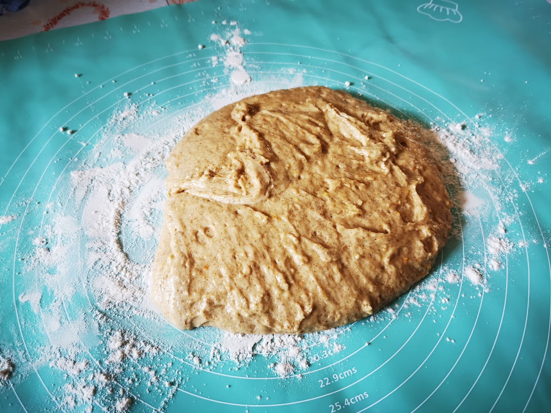 Adesso aggiungiamo le zest di buccia del limone e dell’arancio edibili. Perché edibili? Non tutti gli agrumi sono fatti per essere mangiati, quando si parla di buccia. Quindi è importante che questo frutto non sia trattato con pesticidi chimici, abbia una filiera corta e si sappia la sua derivazione. Per evitare sorprese, se non avete gli alberi in giardino, acquistateli dal produttore direttamente. Ad esempio quando c’è il mercato alla Coldiretti, oppure direttamente nelle aziende agricole. Aggiungiamo anche un cucchiaio d’orzo e lavoriamo per bene il composto con la frusta. Trasferiamo l’impasto sul piano di lavoro infarinato e lavoriamolo per 10 minuti, poi conserviamolo 30 minuti in frigorifero.