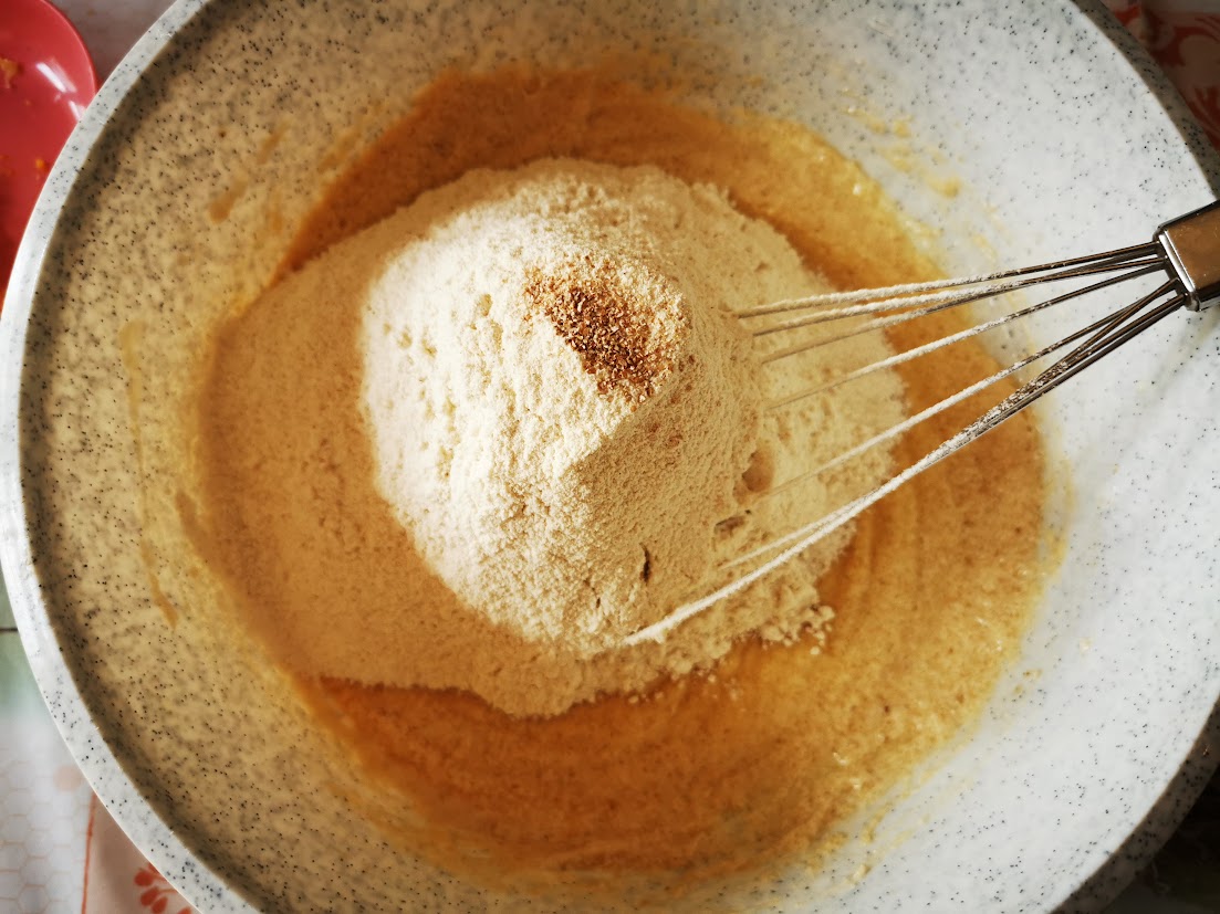 - Aggiungere la farina e il lievito setacciati (credits: In Cucina con Ramy)