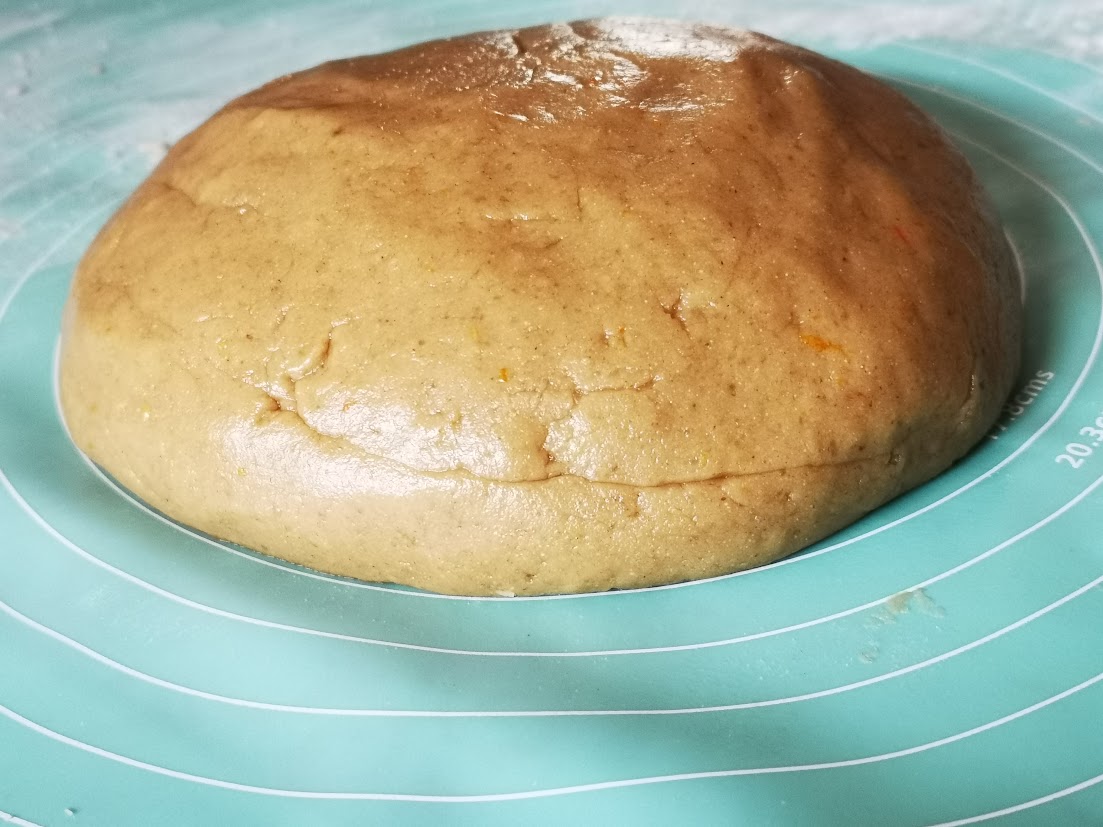 - Formare una palla liscia e lasciarla riposare una mezz’ora in frigorifero, avvolta dalla pellicola per alimenti (credits: In Cucina con Ramy)